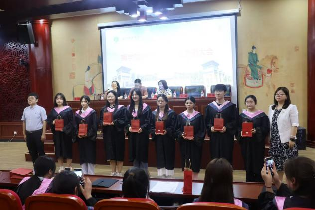 典礼在庄严的国歌声中拉开帷幕。随后,一段由毕业生精心制作的视频温暖放映,青涩面庞、课堂瞬间等画面唤起在场师生的美好回忆。党委书记曹嘉宣读表彰决定,与会领导为优秀毕业生代表颁奖。师生代表发言,诉说不舍与祝愿;在校生代表献唱《一路生花》,为学长学姐们送上最美好的祝福。院长张成玉向毕业生送上祝福与嘱托,希望毕业生们带着母校的期许,在更广阔的天地里绽放光华。最后导师们为每一位毕业生拨苏正冠,在庄重的仪式中为毕业生的大学生涯画上圆满的句号。