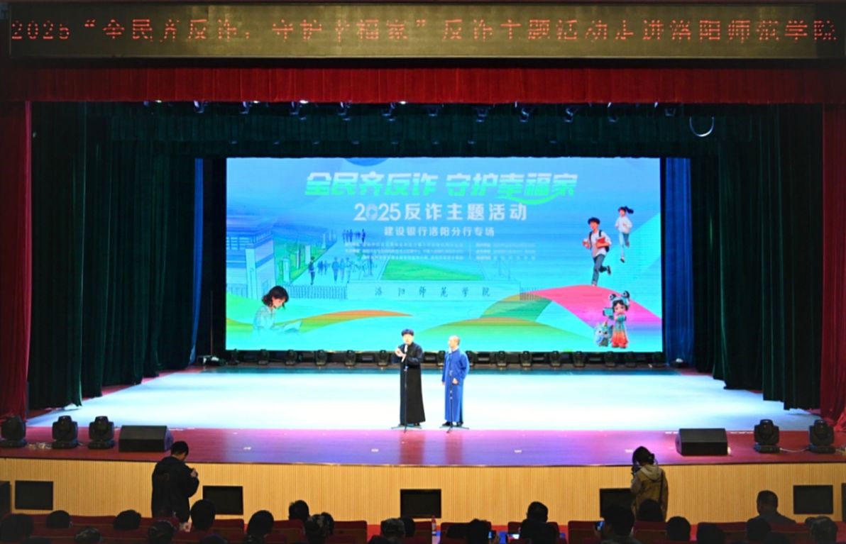 9月19日晚,由洛阳市打击治理电信网络诈骗工作协调机制办公室指导,洛阳市反电信网络新型违法犯罪中心、中国人民银行洛阳市分行、国家金融监督管理总局洛阳监管分局、洛阳日报报业集团主办的2025年“全民齐反诈 守护幸福家”反诈主题宣传活动在我校音乐学院大剧院举行。洛阳市公安局刑侦支队杜鹏,洛阳市公安局城乡一体化示范区分局董亚栋,副校长程金龙,建设银行洛阳分行党委委员、副行长张晓宾,洛阳网总监付晓出席,学校千余名师生代表参加活动。
