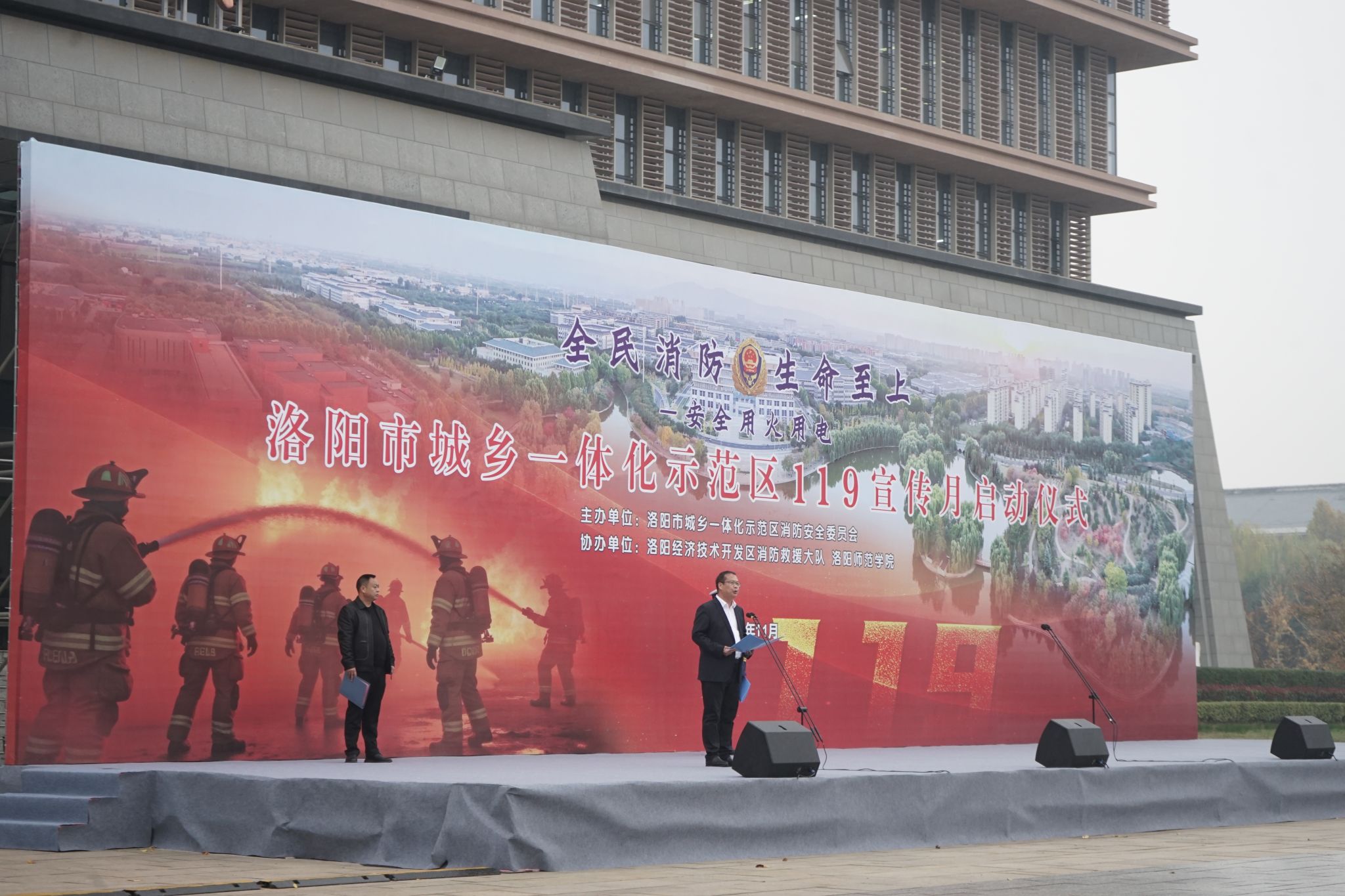 11月6日下午,2025年洛阳市城乡一体化示范区“119消防宣传月”活动启动仪式在我校图书馆广场举行。副校长程金龙、洛阳市城乡一体化示范区消防大队大队长刘洋出席启动仪式并讲话。