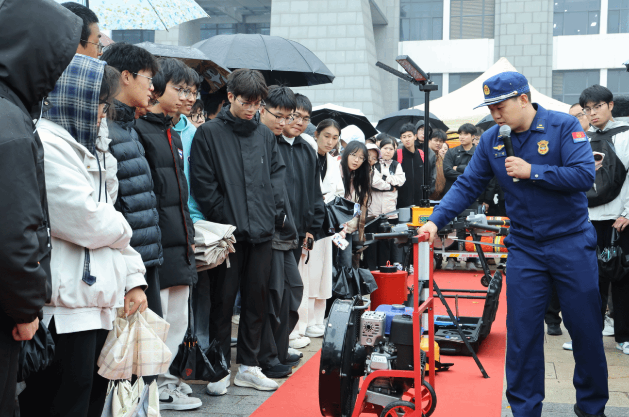 启动仪式上,与会人员及广大师生共同观摩了区消防救援大队的双干线6支水枪操、高喷云梯出水操、消防机器人灭火操等实操演练,并现场参观学习各类消防器材及使用方法等。