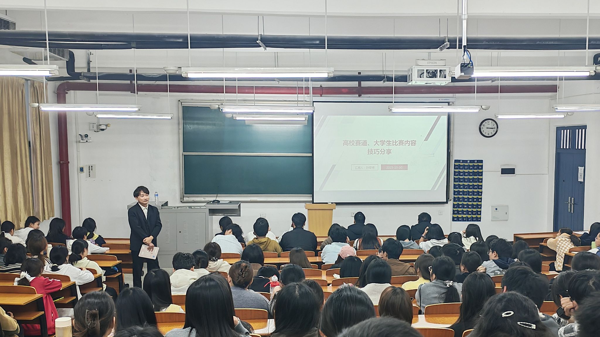 10月30日,学院在逸夫教学楼G2-113举办全国大学生电子商务“创新、创意及创业”挑战赛启动会,三创赛指导教师孙黎博做指导讲座,学院24级、25级学生代表参加会议。