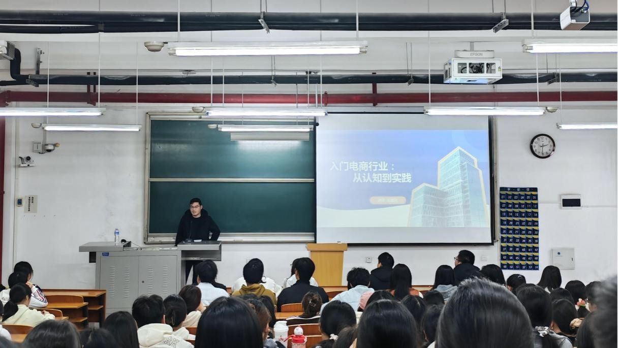 讲座围绕“传统电商底层逻辑”展开,系统解析平台、商家、用户三大核心角色的互动关系,通过真实案例引导学生完成从“消费者”到“商家”的认知思维转变,助力大家掌握电商运营的核心规律。