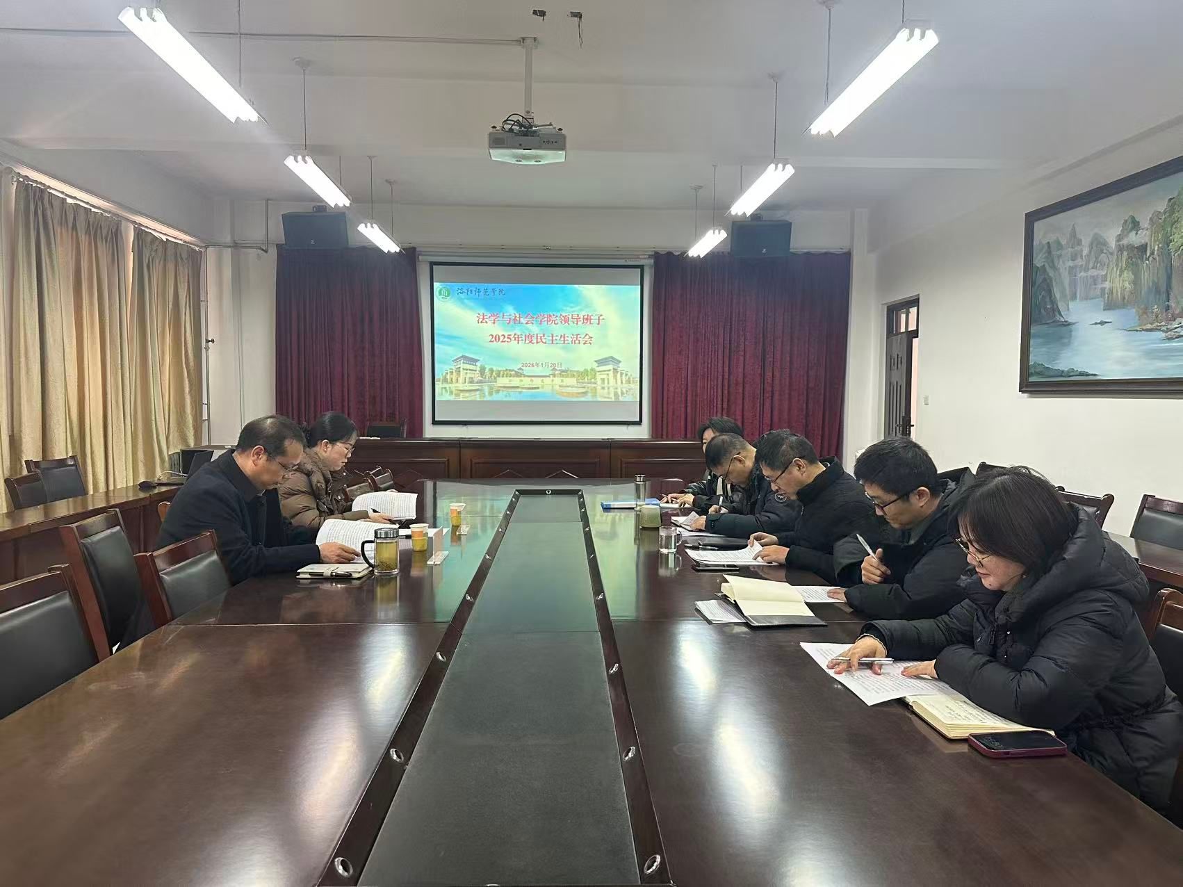 程金龙对学院领导班子民主生活会进行了点评。他指出,此次民主生活会紧扣主题,程序规范,问题查摆深入全面,开展批评和自我批评刀刃向内,整改措施明确具体,体现了党内政治生活的政治性,时代性,原则性,战斗性,达到了统一思想、改进作风、增强团结、促进工作的目的。就做好民主生活会查摆问题整改及学院下一步工作,他提出四点意见:一要聚焦学科建设提质,促进学科特色凝练。坚持“社工”与“法学”双核心驱动,全力攻坚社会工作和法律硕士学位点申报,夯实学科竞争优势;二要聚焦国家战略需求,提升科研创新能力。以项目申报为抓手,聚焦前沿领域和区域特色精准选题,强化跨领域协作与团队攻关,主动对接国家战略与区域发展需求,深入研究产业政策,找准服务地方经济社会切入点,将科研成果转化为社会服务实效;三要聚焦青年教师成长,加强师资队伍建设。坚持“引育并举”,加大高层次人才引进力度,拓宽青年教师访学进修交流渠道,支持教师参与重大课题与纵向横向项目,通过培训与传帮带机制助力教师转型与能力提升;四要聚焦治理效能提升,强化资源整合能力。学院领导班子要精诚团结,统筹协作,围绕“更名大学”“申博”目标,凝心聚力推动学院事业高质量发展,在建设特色鲜明的地方高水平师范大学新征程中展现新作为、谱写新篇章。