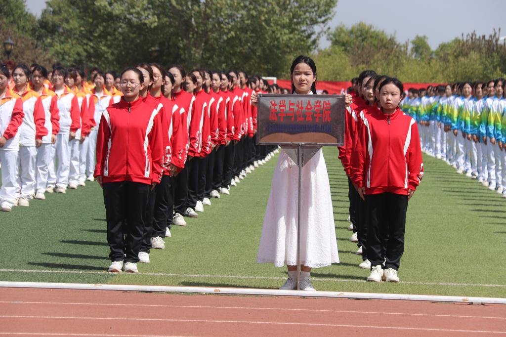 运动会开幕式彩排现场,宋豪向队员们明确了出场顺序及仪态规范,着重强调队列整齐划一,以最佳状态展现我院学子的精神风貌。随着主持人的宣告,各学院方阵依次入场,风格各异、亮点纷呈。我院方阵别具一格,举牌员在前引领,身着法官、法警服饰的学生英姿飒爽,作为方阵先导。其余队员整齐排列,前排同学庄重高举中华人民共和国宪法牌,凸显宪法威严,彰显学院特色。行进过程中,方阵队员步伐稳健、昂首挺胸,赢得现场观众的注目。