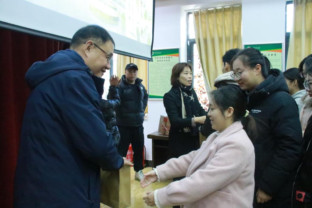 活动中,秦永超首先对同学们学习状态和劲头表示肯定。他深入剖析了当下考研形势,通过分享自身博士备考经历激励同学们坚定信念、持之以恒、坚持不懈、勇往直前。他强调,身体健康是考研成功的基石,希望同学们保持规律作息,拒绝过度劳累,做到张弛有度、劳逸结合。刘伟同样对同学们的身体状况表达深切关怀,叮嘱大家合理规划考研节奏,平衡学习与休息,以最佳身体与精神状态迎接考试。谭音代表学院为考研学子送上真挚祝福:“愿同学们旗开得胜,金榜题名,一战成硕!”活动最后,现场领导老师们共同为同学们分发学院精心准备的慰问品,并一一与同学们亲切击掌,传递力量与信心。