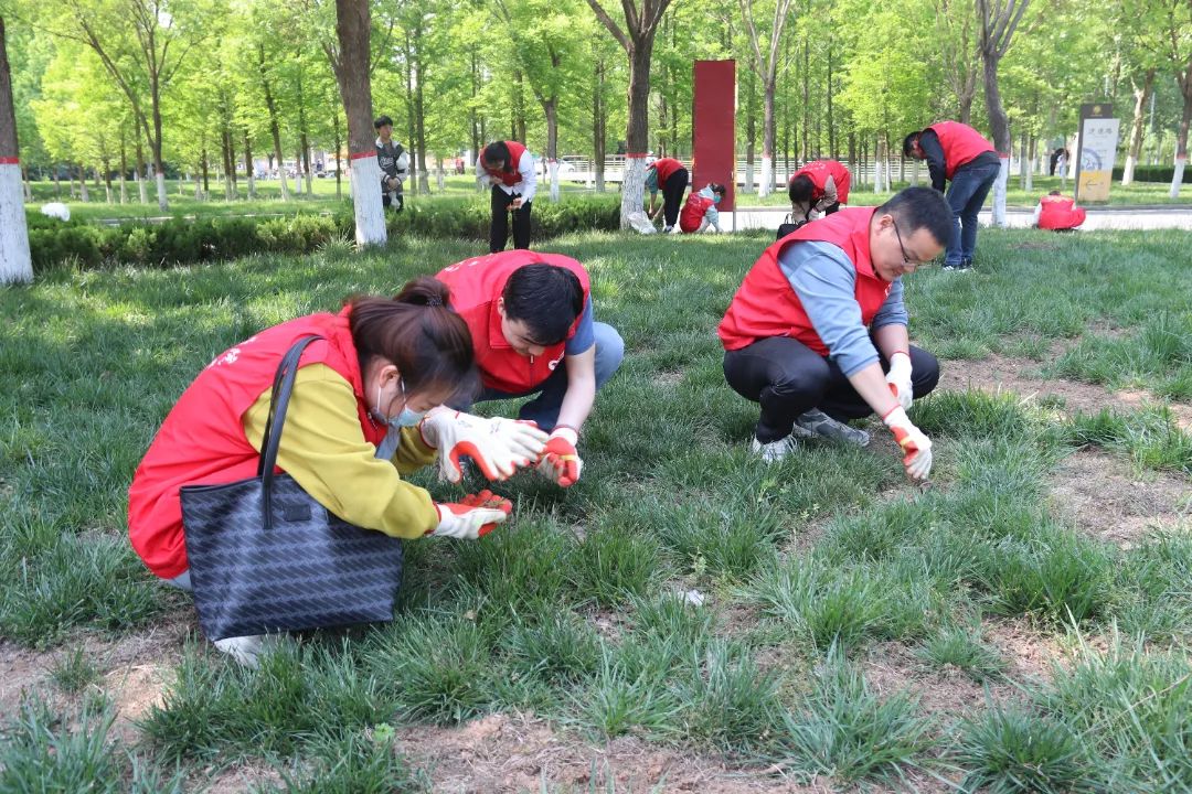 4月27日下午,我院于校医院东边草地开展“美丽校园,文明有我”志愿除草服务活动,我院全体老师和部分学生参加此活动。