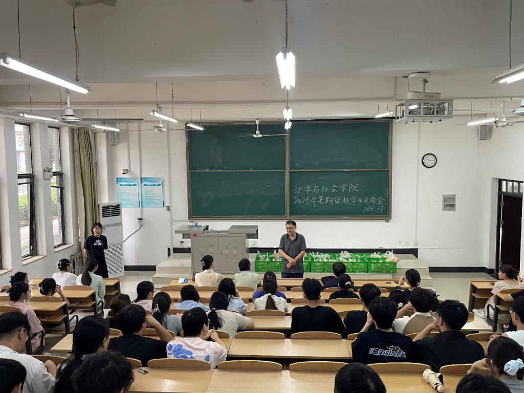 为关心暑期留校学生学习生活,引导学生科学备考、安全留校,7月21日上午,我院在A3-115教室举办2025年暑期留校学生见面会。党委书记刘伟、院长秦永超、党委副书记谭音、副院长安连朋和聂飞,教师代表季琳及育人导师(辅导员)宋豪出席活动。我院留校学生参加活动。