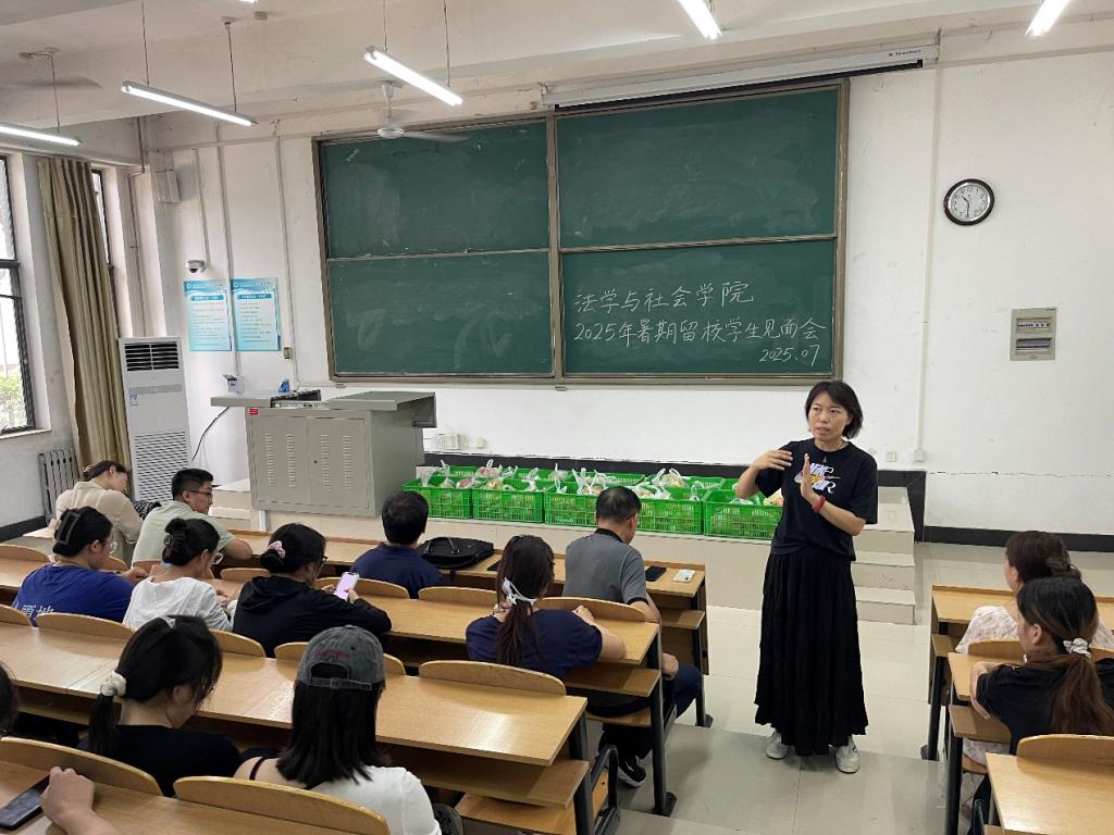 活动尾声,老师们为同学们送上暑假清凉小礼品,小小的心意传递着学院的关怀,让夏日留校多了几分“清凉” 与温暖。此次见面会,将人文关怀与考研指导、安全保障深度融合,既为留校学生注入备考动力,也夯实了暑期安全基石。学院将持续关注留校学生需求,助力学生在逐梦路上稳步前行,以实际行动守护青春成长。