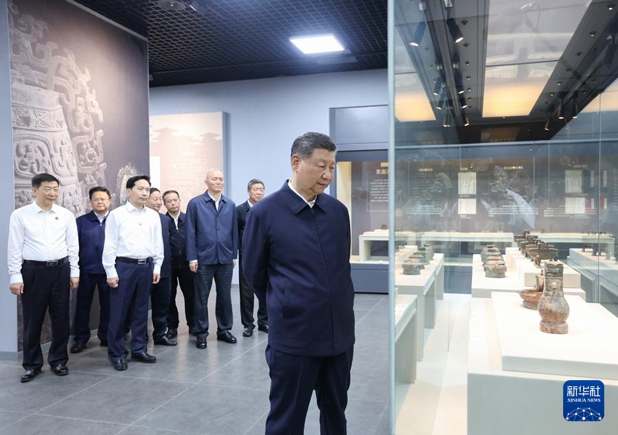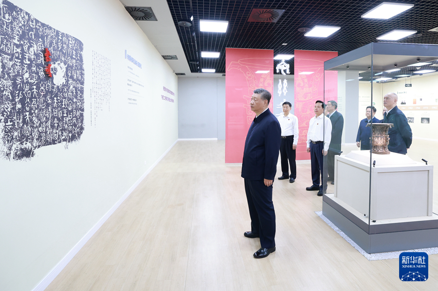 10日下午,在前往甘肃途中,习近平在陕西省委书记赵一德和省长赵刚陪同下来到宝鸡市考察。习近平参观了宝鸡青铜器博物院。他指出,我国青铜文明源远流长、灿烂辉煌,在世界文明史上独树一帜。要加强青铜器文物的保护研究和宣传阐释,更好激发全社会特别是青少年对伟大祖国和中华文明的热爱。习近平还察看了渭河生态公园。