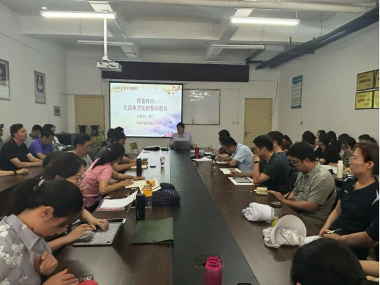 为进一步加强教师队伍建设,提高教师的职业素养和师德师风水平,2024年6月6日,在敦行楼411会议室,公共教研部召开师德师风负面典型案例警示教育大会。公共教研部党委书记李广主持会议,公共教研部全体教职工参会。