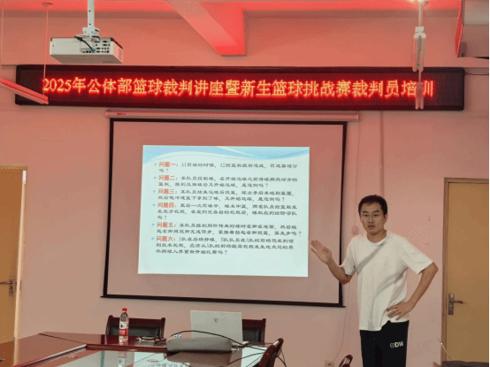 为进一步提升学生的篮球裁判专业水平,完善校园篮球赛事的组织与裁判体系,2025年9月29日、10月15日与10月16日,洛阳师范学院公共体育教研部成功举办了三次篮球裁判培训活动。本次培训由李图南老师主讲,副裁判长苗化玉、仲裁李帅东共同参与指导。