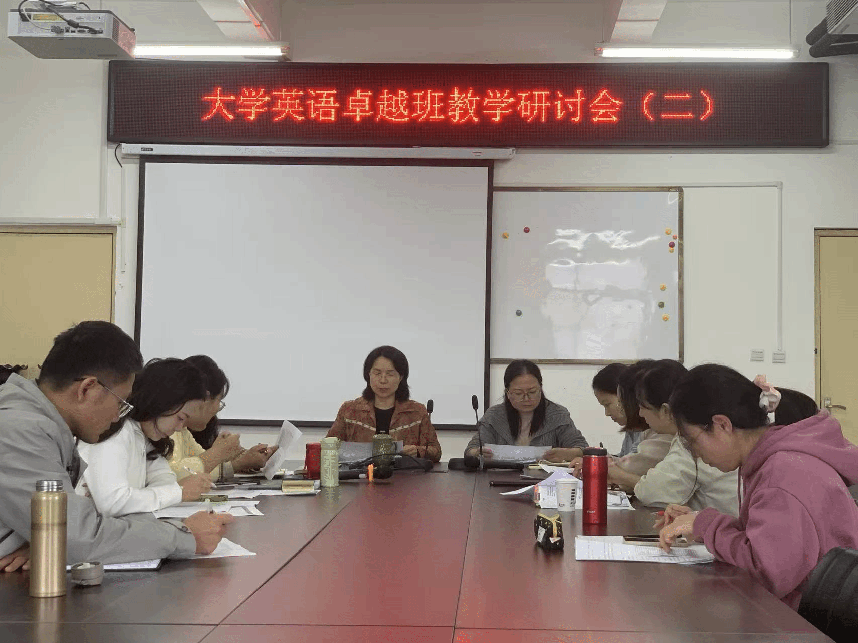 为深入推进大学英语卓越班教学改革工作,公共外语教研部于9月23日组织召开第二次教学改革研讨会。本次会议在首轮研讨基础上,重点围绕“视听说”与“读写译”两类核心课程的教学设计与评价体系进行了深入研讨。主任张艳红、副主任张丽丽、郎红琴教授、高级英语教研室主任及卓越班全体授课教师参加会议。