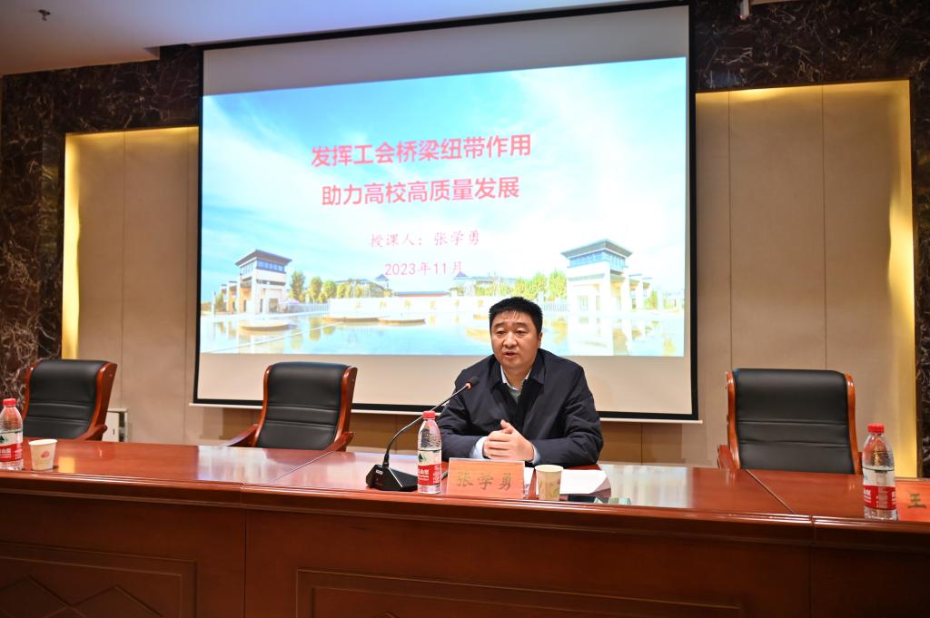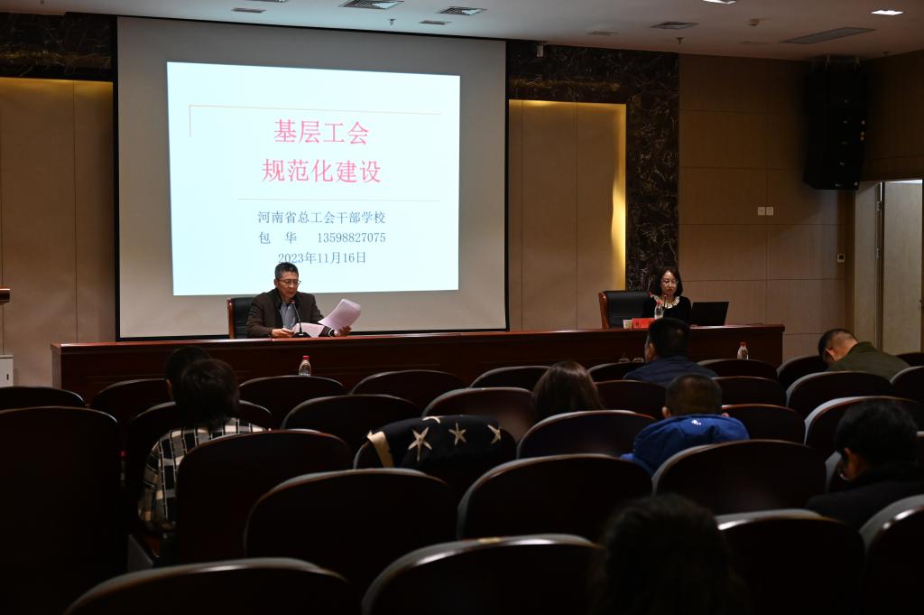 河南省教科文卫体工会主席张学勇以《发挥工会桥梁纽带作用助力高校高质量发展》为题,作首场报告。河南省总工会干部学校高级讲师付朝、包华和庄凤娟,先后围绕“学习贯彻中国工会十八大精神 推进中国工会工作现代化”“基层工会规范化建设”“如何当好工会主席”等问题作专题授课。17日下午,全体参训人员赴洛阳市工运史馆和洛阳市家风馆进行参观学习。