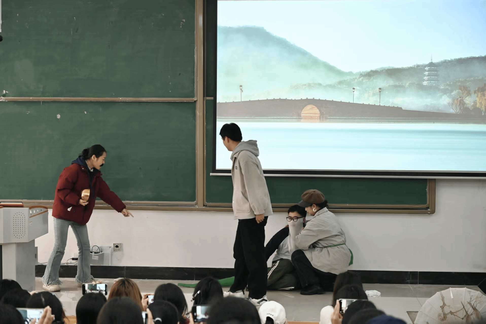 11月13日下午,歌舞剧表演专场在 A2-104教室精彩上演,歌曲、舞蹈、戏曲、小品等多种艺术形式轮番登场,为师生带来一场视听盛宴。《如愿》等歌曲旋律动人,演唱者情感真挚,展现出扎实的艺术功底;《戏韵洛师》巧妙融合传统戏曲与校园生活,让传统艺术在校园舞台焕发活力;小品《白蛇前传》剧情幽默、表演生动,引爆全场笑点的同时也传递了积极向上的正能量。展演现场气氛热烈,充分展现了学院学子多才多艺、朝气蓬勃的青春风貌。