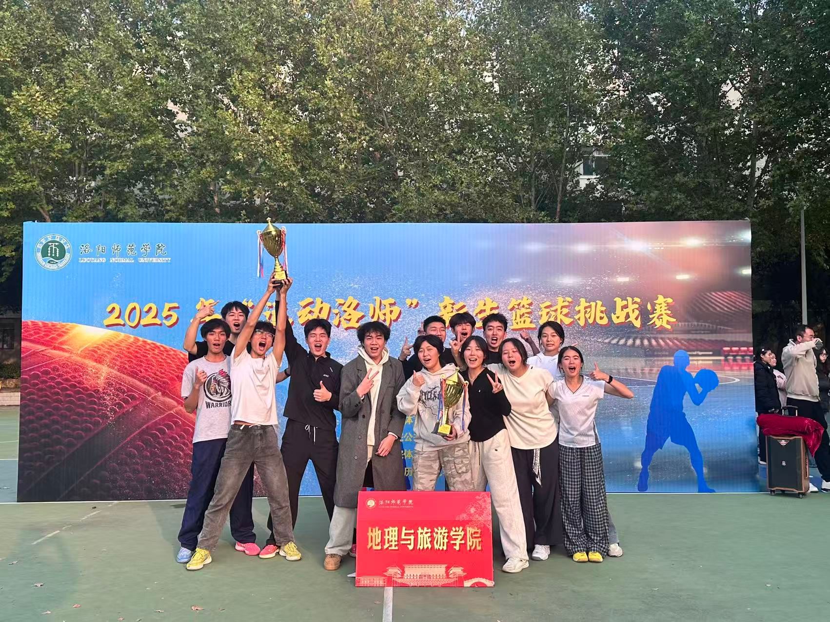 在刚刚落幕的2025年“运动洛师”新生篮球赛中,我院篮球代表队奋力拼搏,捷报频传,经过激烈角逐,最终男子篮球队以绝对实力勇夺冠军,女子篮球队同样表现优异,成功斩获亚军,双双为学院赢得荣誉。