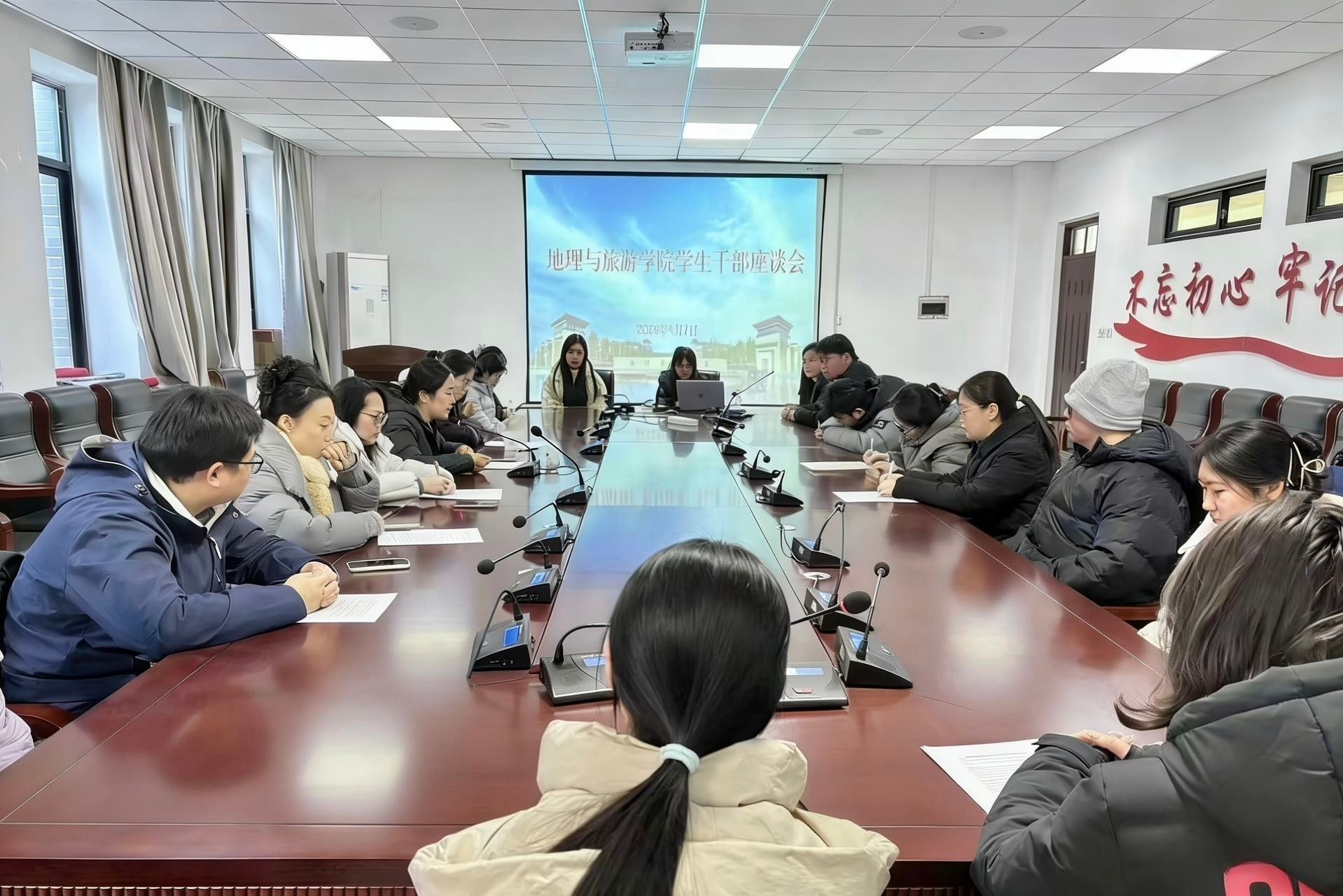 为切实了解学生工作动态,倾听学生骨干心声,破解工作难题,汇聚育人合力,1月7日上午,地理与旅游学院在210会议室召开学生干部座谈会。学院党委副书记李佳、全体辅导员和班主任代表参加会议,学生干部代表参加座谈。