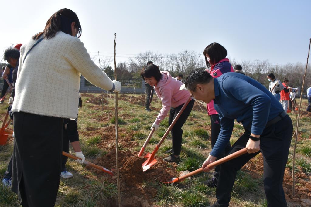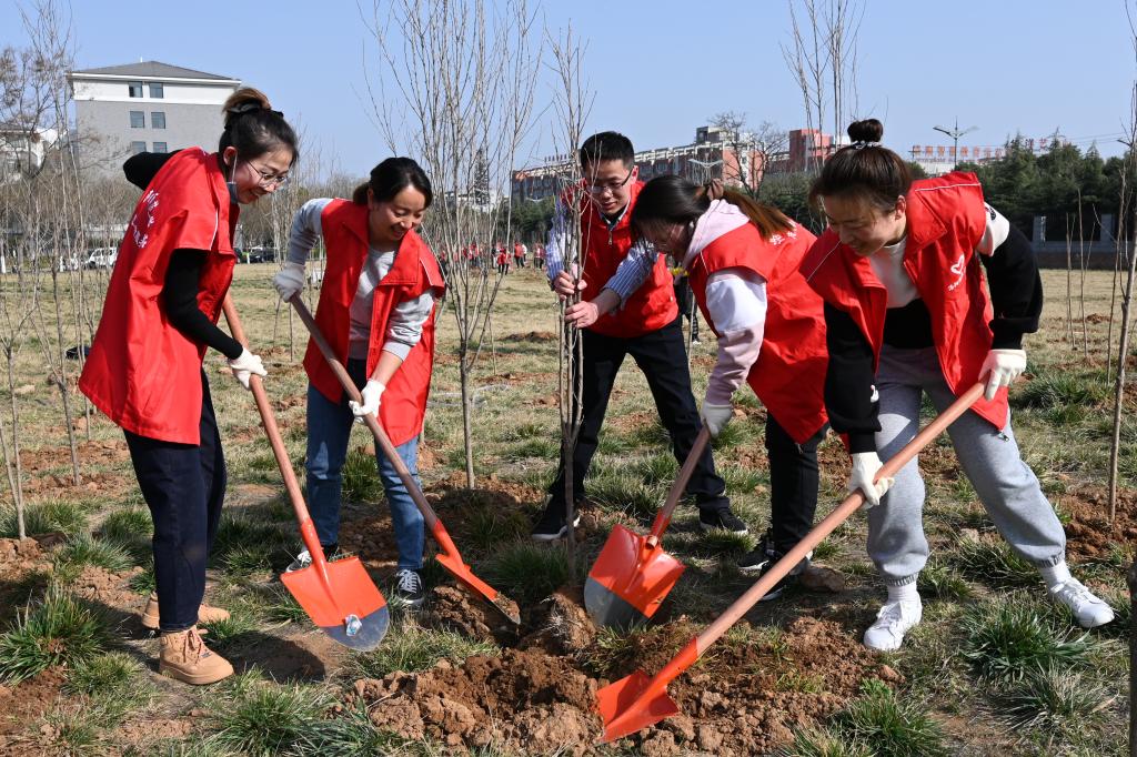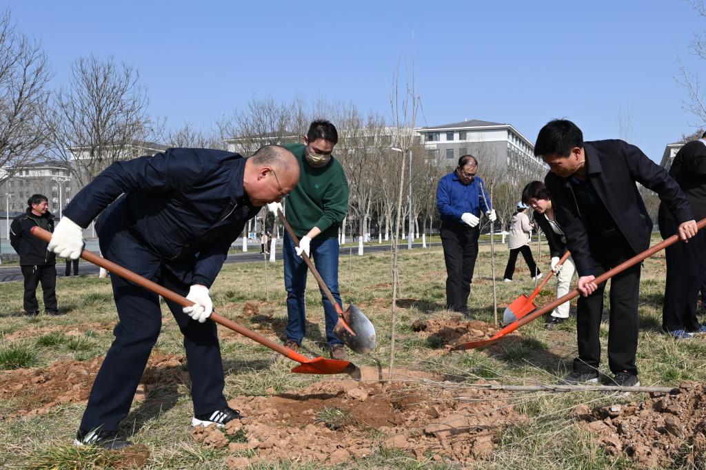 又是一年春光好,植树添绿正当时。在第44个植树节来临之际,3月10日下午,在后勤服务集团的积极配合和大力支持下,机关党委组织开展了“我为校园添新绿 机关党员在行动”义务植树主题党日活动。校党委副书记宋文献、郭新民,副校长李晓彦、庞彩霞,机关各党支部书记及党员代表70余人携手为校园再添新绿。