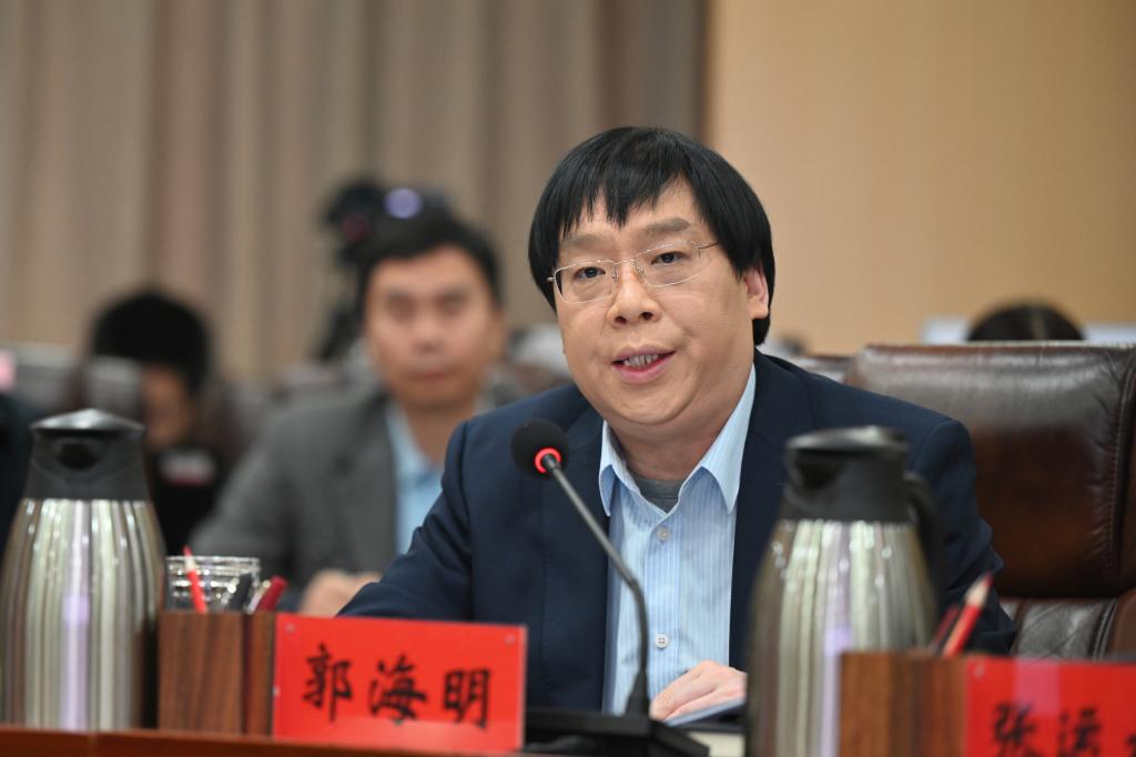 党委副书记、校长郭海明以《落实立德树人任务 加强本科教育教学 奋力谱写学校高质量发展新篇章》为题,从“健全体制机制,落实立德树人根本任务”“坚持以本为本,提升本科教育教学质量”“扎根河洛大地,彰显学校鲜明办学特色”“聚焦成长成才,全面提升人才培养成效”等四个方面进行了补充汇报。