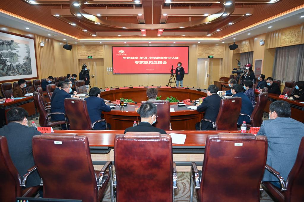11月2日,学校在成均楼B301会议室召开2022年师范类专业认证专家意见反馈会。教育部师范类专业认证专家组全体成员,河南省教育评估中心副主任张新民,我校全体校领导,相关职能部门负责人,生物科学、英语、小学教育三个专业所在学院领导班子成员,设有师范类专业的学院负责人参加反馈会。会议由联合认证专家组组长暨生物科学专业专家组组长、南京师范大学原副校长傅康生教授主持。