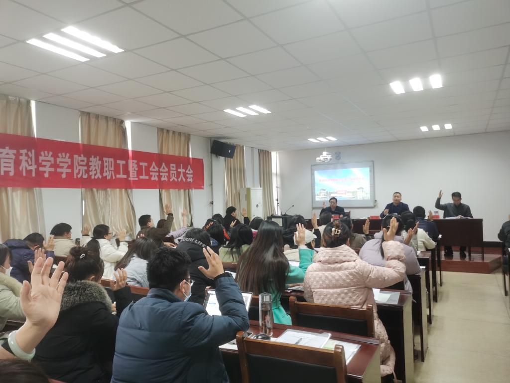 在庄严的国歌声中,大会拉开了帷幕。院长晋银峰以《凝心聚力、继往开来,推动教育科学学院高质量发展》为题向全体会员做报告,全面总结了2022年度工作。分工会主席韩守东代表学院第三届工会委员会向大会做了题为《求实创新、服务大局,为加快我院各项事业全面发展再立新功》的工作报告,全面系统地总结了第三届工会五年来在引领教职工思想建设、凝聚教职工共识、保障教职工权益、丰富教职工精神文化生活方面的作用,并分析了工作中存在的问题和不足。
