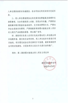 近日,教育部高校学生司发布了《关于第二期供需对接就业育人项目立项名单的通知》(教学司函〔2023〕6号),经个人申请、用人单位申报、专家审核、立项单位信息核查等环节,我院党委副书记韩守东及其团队与青创未来集团有限公司联合申报的“就业实习基地项目”获批,确定为教育部高校学生司第二期供需对接就业育人项目。