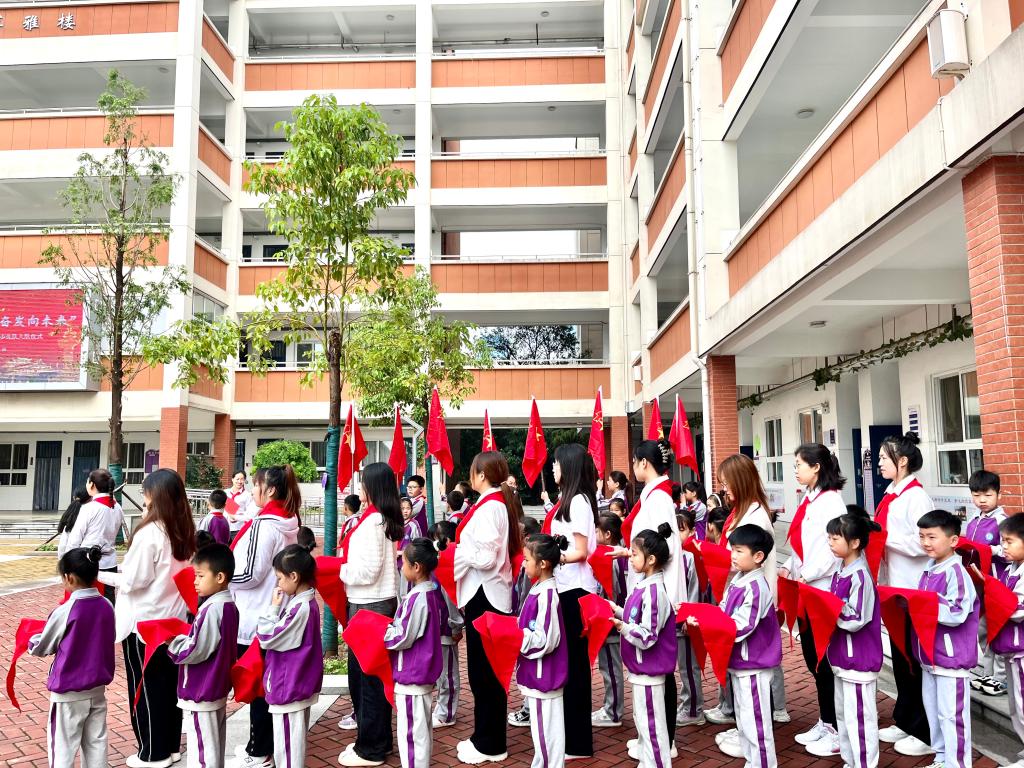 近日我院组织团员代表参加伊滨区第一实验小学少先队员入队仪式,“一二三墩苗”党团队一体化辅导员工作室成员牛辰龙、王俊娣及学院13名团员代表参加。