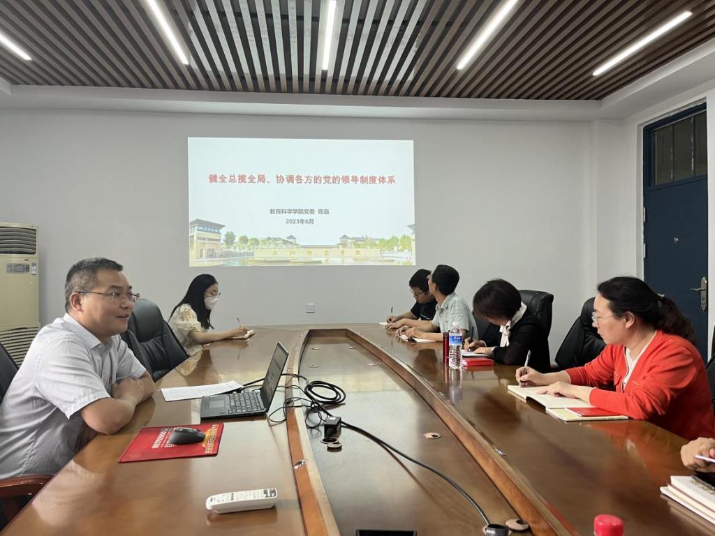 6月1日下午,学院党委书记陈磊在A6-411会议室为我院教工第二党支部讲授题为“健全总揽全局、协调各方的党的领导制度体系”的党课,支部全体同志及学院全体辅导员到场聆听。