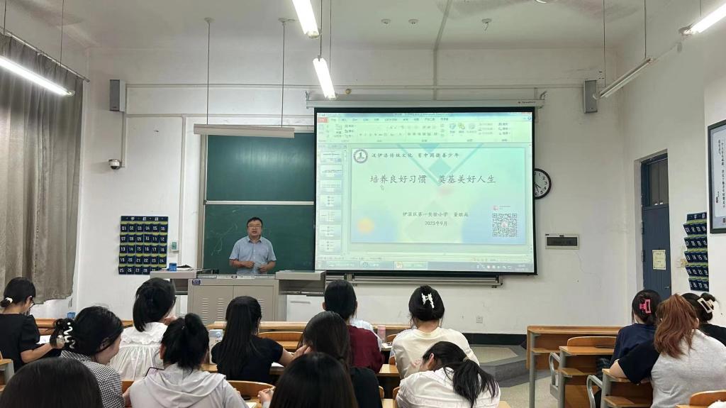 2023年9月15日下午,应教育科学学院、问礼书院二号院联合邀请,社会导师——洛阳市伊滨区第一实验小学校长、河南省优秀教师董朋高在A6-103教室,为小学教育专业学生做了题为《培养良好习惯,奠基美好人生》的专题报告。