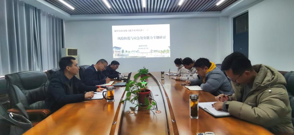 为进一步加强辅导员队伍建设,提升辅导员预防和处置突发事件能力水平,筑牢校园安全防护屏障,1月17日,我院在A6-411开展辅导员“风险防范与应急处突能力”专题培训。学院党委书记陈磊、院长晋银峰、副书记韩守东,全体学生辅导员参加培训。
