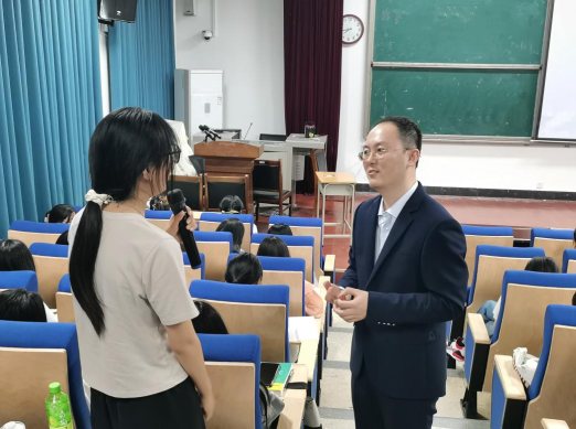 徐博士根据近年考研英语内容,进行了充分的准备。他通过一对一问答的形式与同学们进行了生动有趣、别开生面的互动交流,对学生们的英语水平进行了初步了解,为后续课程的设计提供针对性、合理性的参考。随后,他以考研英语真题为例,展开讲解,针对阅读、作文、翻译等题型进行具体分析,进一步开阔学生的眼界、提高学生们的分析理解能力。最后,徐博士希望同学们在备考阶段善于抓住重点考点,提高学习效率,进行刷题训练,通过做模拟试题对知识点进行查漏补缺,学会思辨意识,同时要保持良好的心态,积极调整作息,以饱满的精力和昂扬的斗志投入到备战中去。
