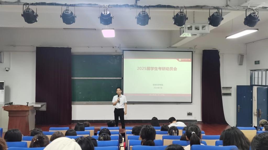 7月5日上午,我院在A6-116教室召开考研学生动员会暨暑期留校学生安全教育会。学院院长晋银峰、党委副书记蔡云改、2025届毕业班辅导员及全体留校学生参会。