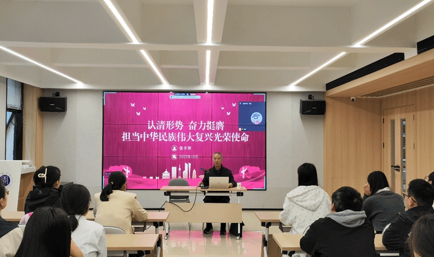 为深入学习贯彻党的二十大精神,切实加强入党积极分子思想引领,引导青年学子坚定理想信念、勇担时代使命,10月17日中午,我校关心下一代工作委员会常务副主任张辛卯在开阳书院二号学生社区会议室开展以“认清形势 奋力挺膺 担当中华民族伟大复兴光荣使命”为主题的党课培训,书院社区2025年下半年全体入党积极分子参加。