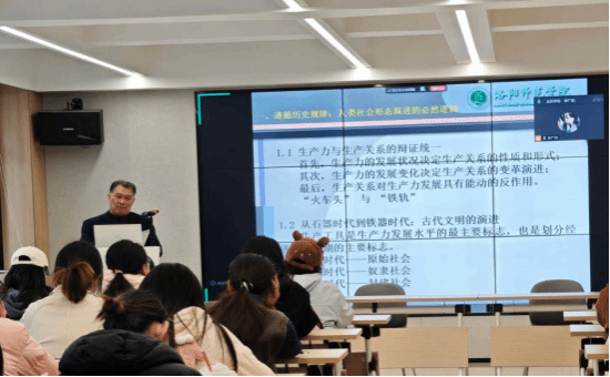 培训中,张欣紧扣“遵循历史规律、把握发展大势”核心展开讲解。他结合人类社会从原始社会到社会主义社会的演进脉络,用生产力与生产关系的辩证关系,阐释了社会发展的深刻内涵。他强调,青年要学会用历史唯物主义视角看问题,主动成为历史规律的遵循者、时代进步的推动者,社会理想的奋斗者。