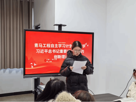 活动前期,青马班学员结合日常理论学习安排,围绕党的创新理论开展了自主研读,撰写学习心得,并结合自身学习实践思考理论应用路径。分享会上,学员们依次登台,结合社会实践、志愿服务等经历,分享理论学习的收获与感悟。有的学员围绕党的创新理论在基层实践中的生动体现,讲述参与社区治理调研、乡村振兴实践的所见所感;有的学员结合学科特色,探讨如何将创新理论融入专业研究,为行业发展贡献青春智慧。在交流研讨环节,学员们围绕“如何精准把握党的创新理论体系逻辑”“青年学子如何将理论学习成果转化为干事创业动力”等话题展开热烈讨论。青马班指导老师对本次活动进行总结点评。