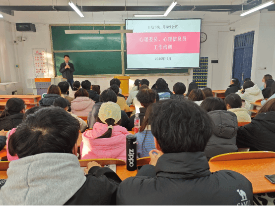 为进一步提升学生骨干的专业素养与服务能力,构建心理健康防护网络,12月4日下午,开阳书院二号学生社区于G4-210教室举办心理委员、心理信息员工作培训。书院社区心理驿站站长贾尚卿主讲,心理委员、心理信息员参训。
