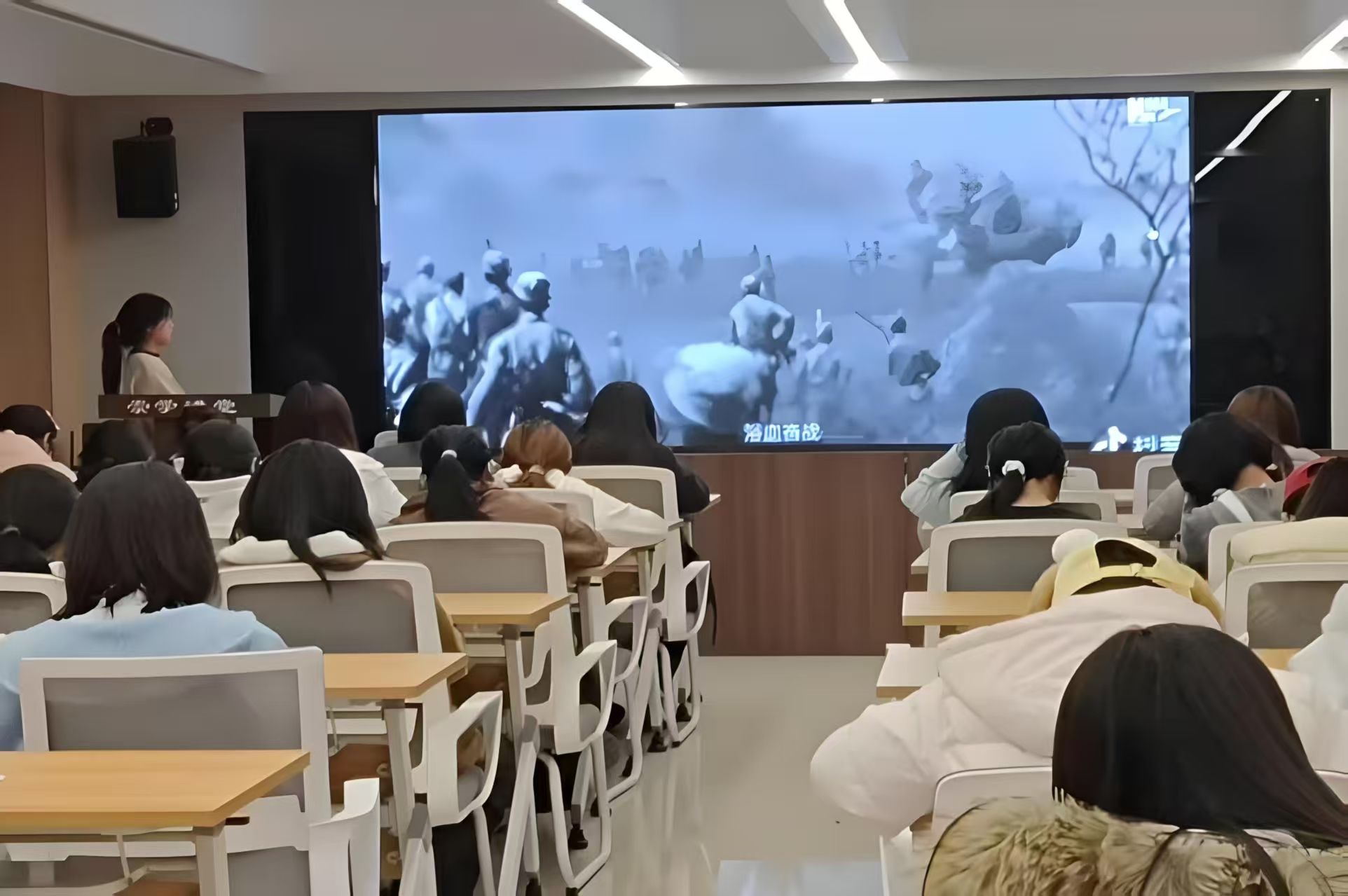 光影溯初心,回望壮阔征程。活动中,团支部精选《新中国发展巡礼》等红色短片,以光影为媒带领团员回溯新中国 76 年奋进历程。从开国大典到改革开放,从脱贫攻坚到航天壮举,一个个关键节点、辉煌成就,让团员直观感受祖国从站起来、富起来到强起来的伟大飞跃,在历史与现实交融中筑牢信仰之基。