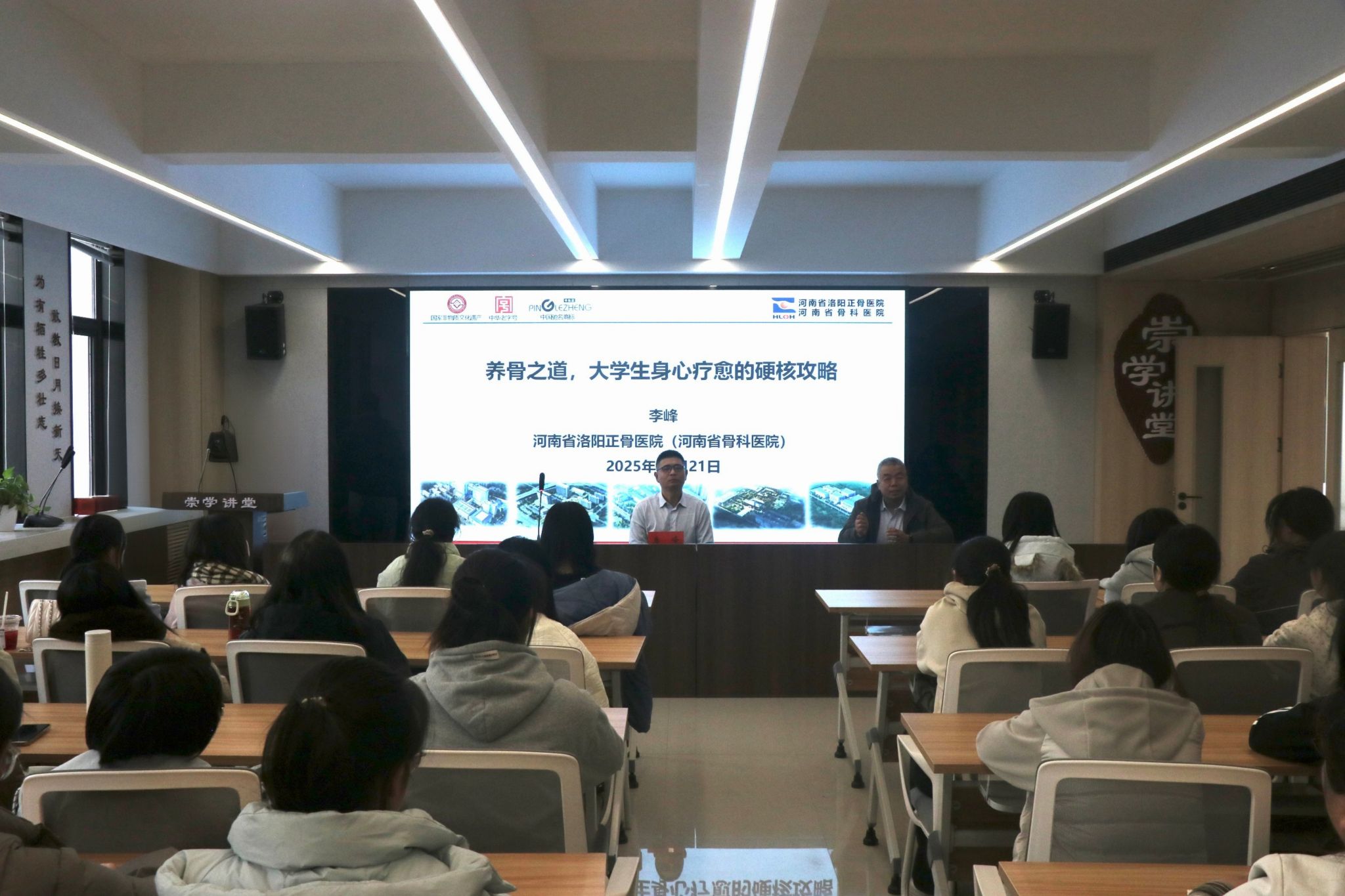 11月21日下午,龙门书院二号学生社区于崇学讲堂召开“养骨之道,大学生身心疗愈的硬核攻略”专题讲座。本次讲座由河南省骨科医院郑州院区骨关节病二科主任李峰主讲,龙门书院二号学生社区党委书记张方方主持,书院学生代表参加。