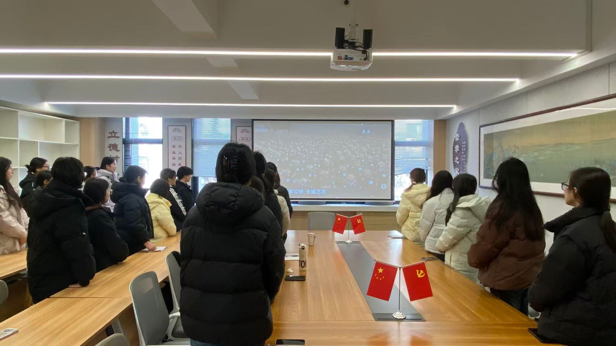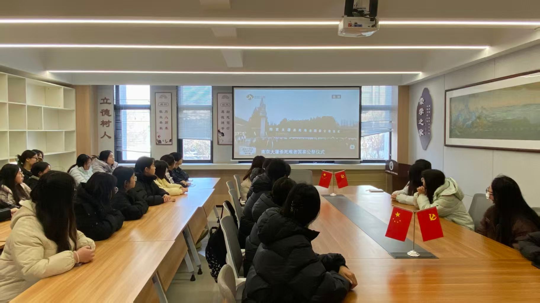 2025年12月13日是第十二个南京大屠杀死难者国家公祭日。为深切缅怀侵华战争期间惨遭杀戮的死难同胞,厚植爱国主义情怀,龙门书院二号学生社区组织入党积极分子集中收看南京大屠杀死难者国家公祭仪式直播。