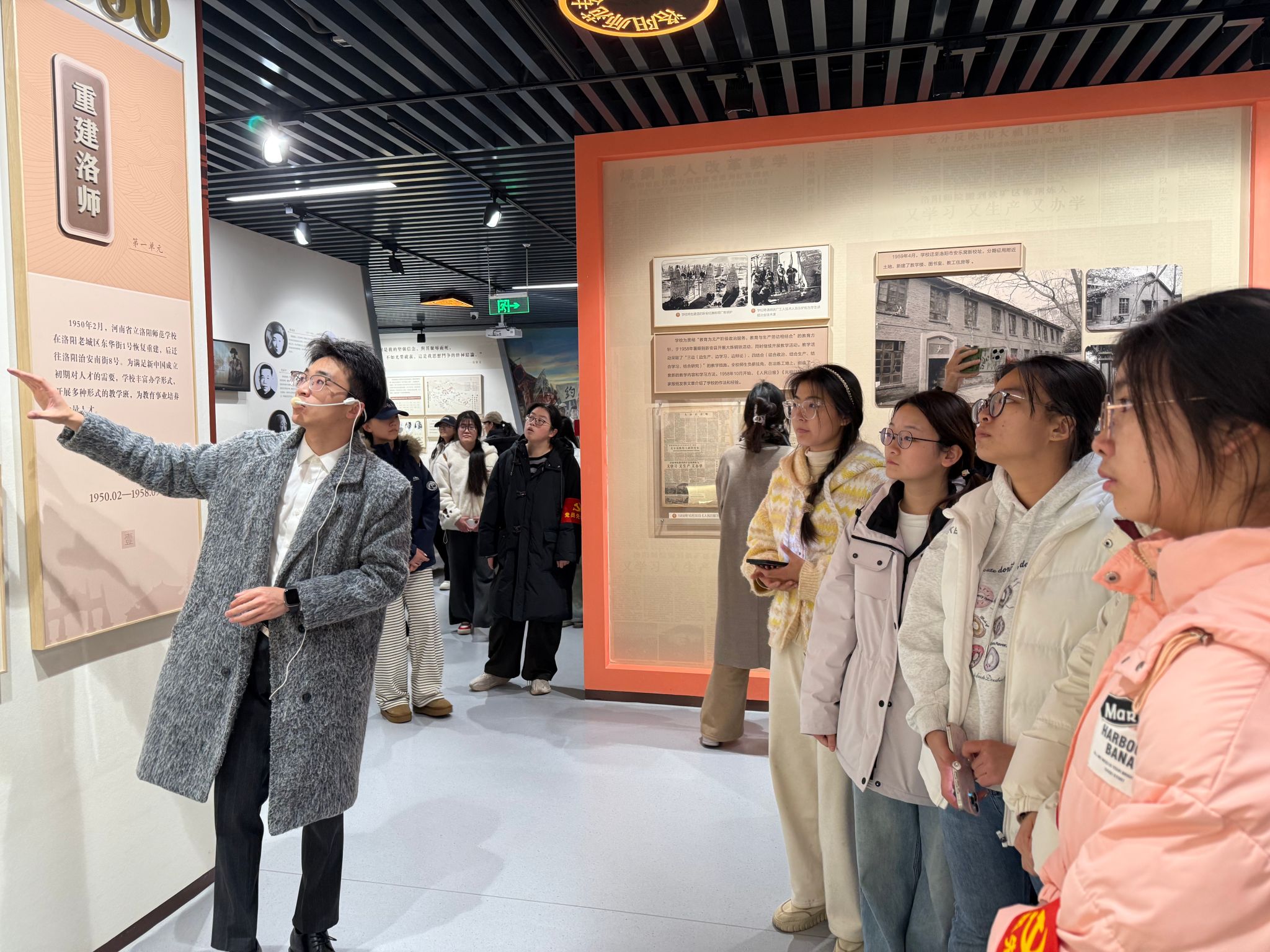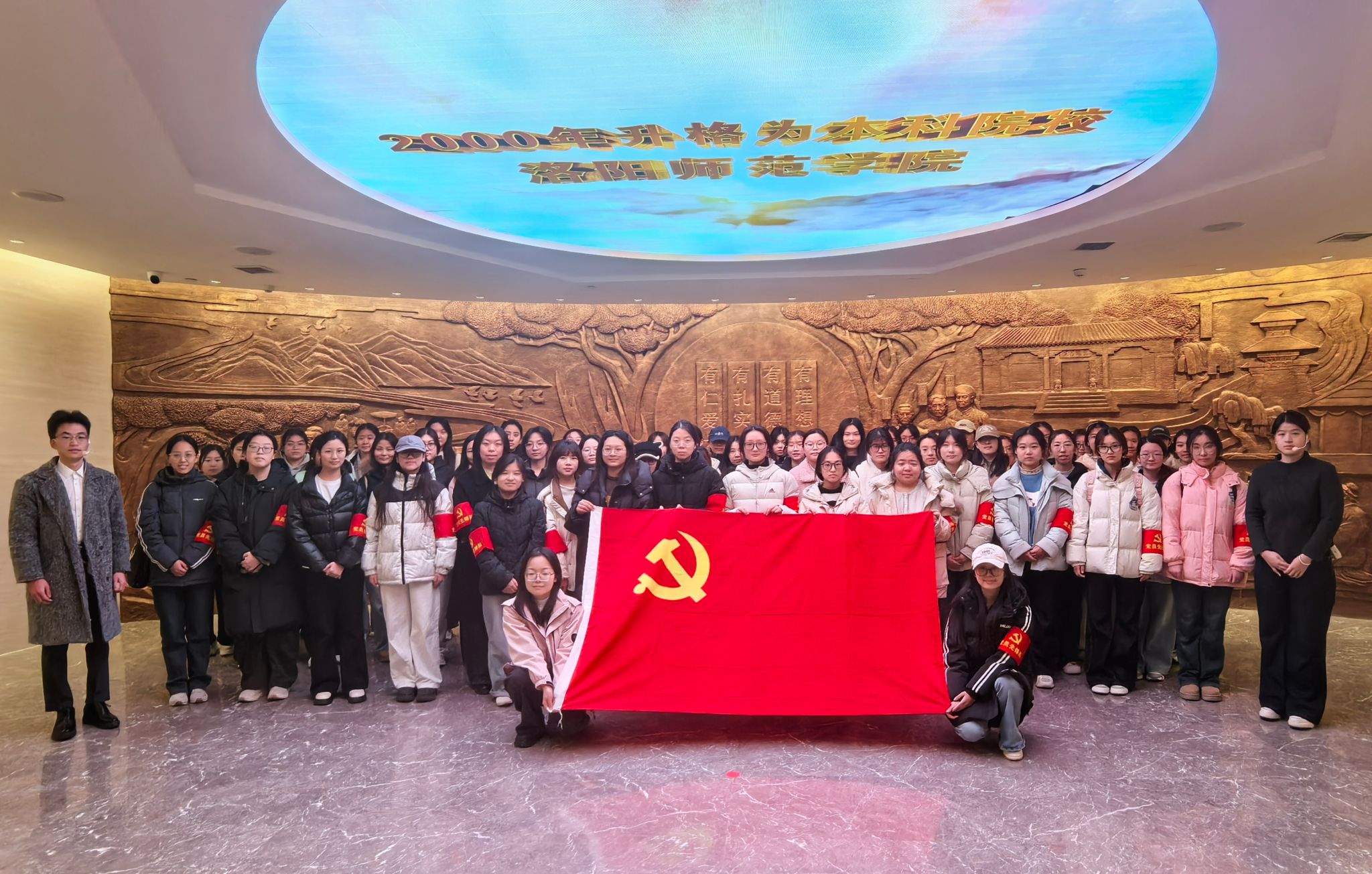 为厚植爱校荣校情怀,锤炼党性修养,2025年12月11日15时,龙门书院一号学生社区以“龙门星火・红蕴河洛”党建品牌为引领,组织“龙门先锋队”41名学生党员及44名2025年下半年入党积极分子赴校史馆参观学习。校史馆“薪火讲解团”姜子越、马明才同学担任讲解,书院社区田卡吨老师全程陪同指导。