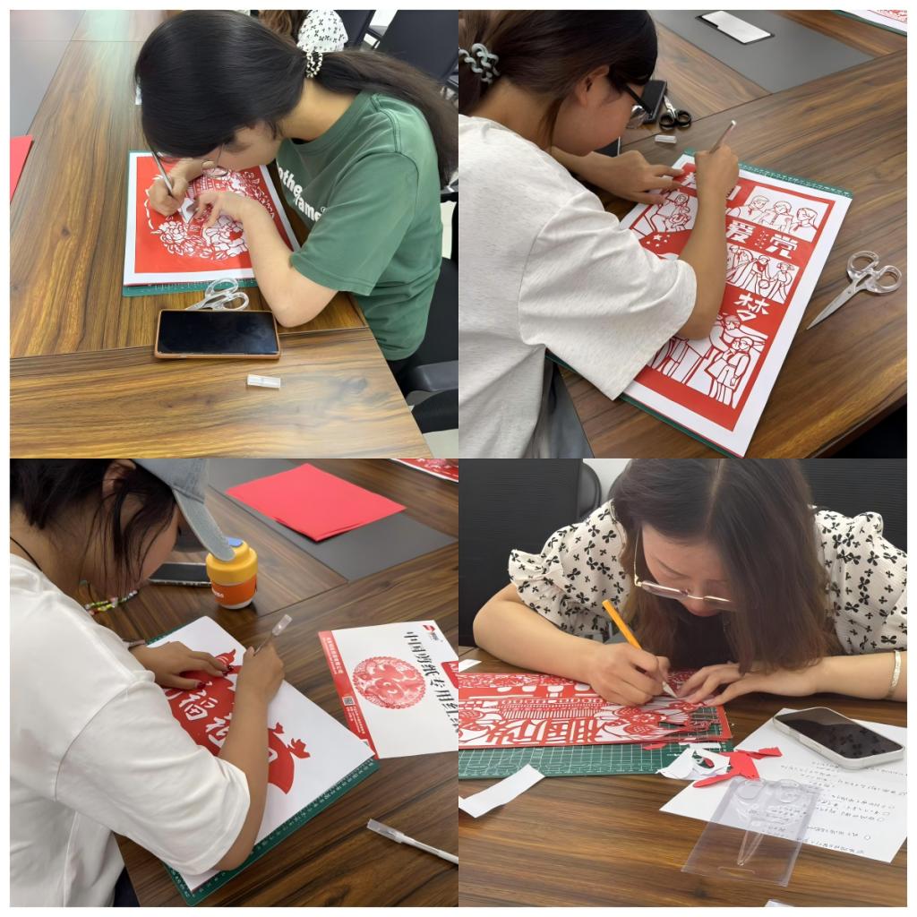 随后,同学们开始自己动手,用剪刀和刻刀开始创作。同学们拿起剪刀和刻刀,将爱国之情融入创作,以指尖艺术诠释初心使命。
