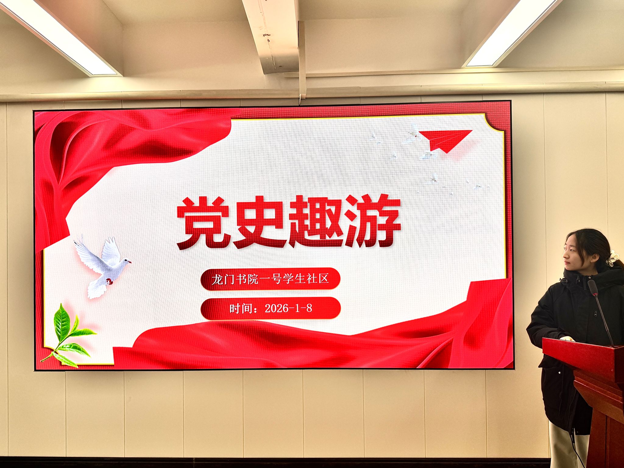 为深化党史学习教育,推动红色基因与河洛文化相融合,进一步丰富“龙门红韵”党员工作坊实践形式、擦亮“龙门星火红蕴河洛”党建品牌,1月8日下午,龙门书院一号学生社区于三楼非遗馆举办“学党史,忆初心”党史趣游活动。24名来自各支部的成员组队参与,在趣味互动中重温红色历史、凝聚支部合力,推动党建育人更富温度与活力。