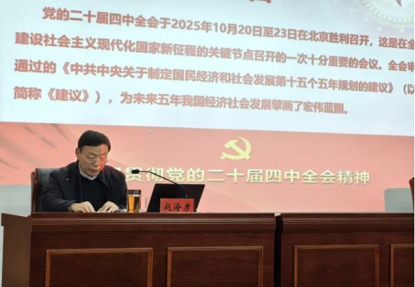 讲座中,赵海彦围绕党的二十届四中全会精神展开系统阐释。他指出,党的二十届四中全会是在我国发展关键时期召开的一次重要会议,具有守正创新的理论意义与继往开来的历史意义,为“十五五”时期乃至更长阶段的发展指明了方向、提供了遵循。