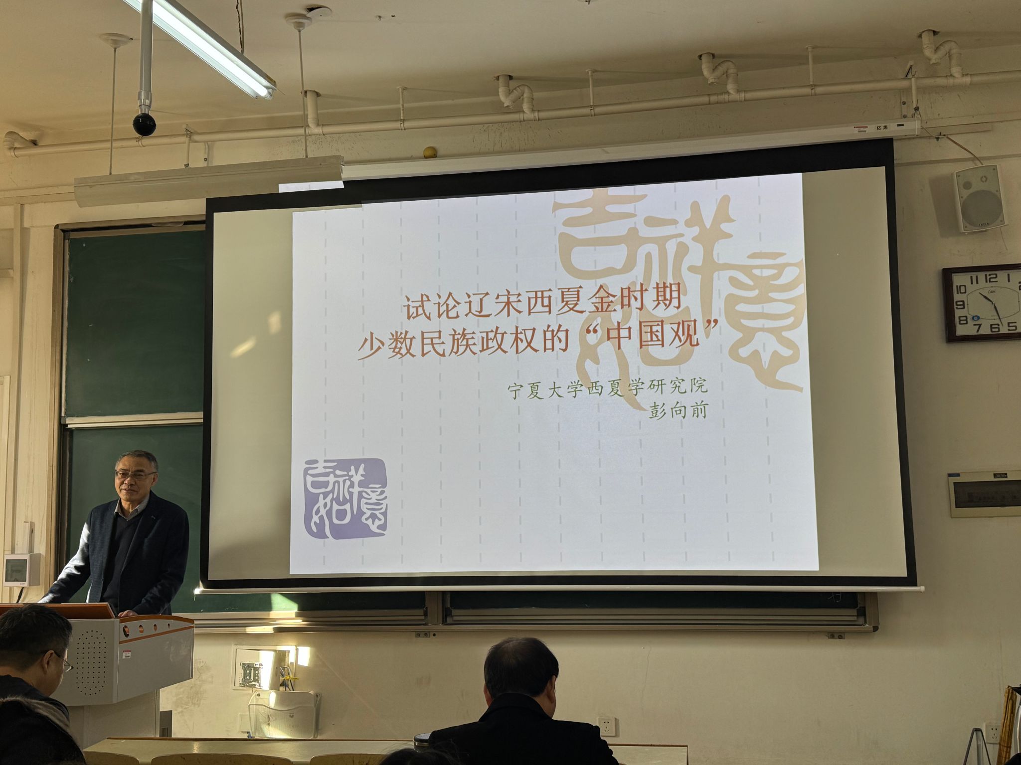 12月25日上午,杰出校友、国家“万人计划”哲学社会科学领军人才、宁夏大学西夏学研究院彭向前教授,应邀为我院师生作了《试论辽宋西夏金时期少数民族政权的“中国观”》的学术讲座,张显运教授主持。