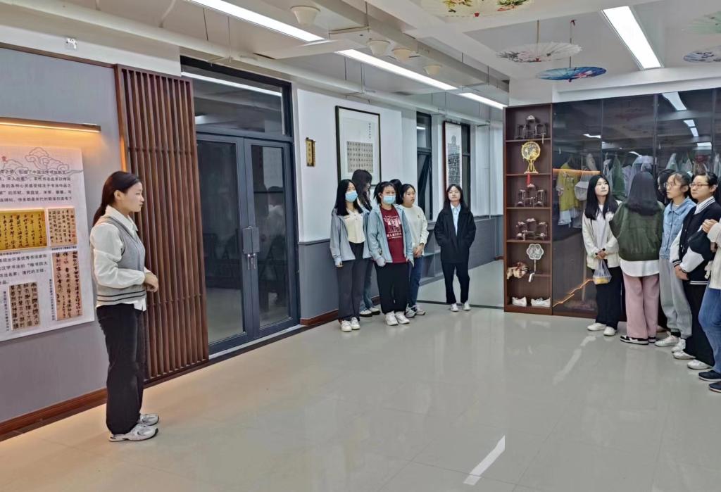 本次参观,陈思语同学带领同学们首先了解龙门书院的一楼大厅--河洛文化厅,从龙门书院赋到书院院训,紧接着参观学生们优秀的书法作品,大厅右侧灯幕上是书院组织架构及育人模式改革的介绍,通过这些讲解,可以让学生们更加了解龙门书院的相关制度和育人活动;二楼是汉服展示走廊,在这里,可以进行汉服的借用及拍照打卡,魏碑艺术馆可以进行书法练习和魏碑传拓的实践,丰富学生们的课余生活;三楼是书院的非遗展区,在这里可以详细了解洛阳的非物质文化遗产代表性项目,可以进行剪纸、泥塑、围棋等活动;最后,陈思语带领同学们参观了一楼的功能室,功能室也为学生今后的生活学习提供了一系列社区化服务。
