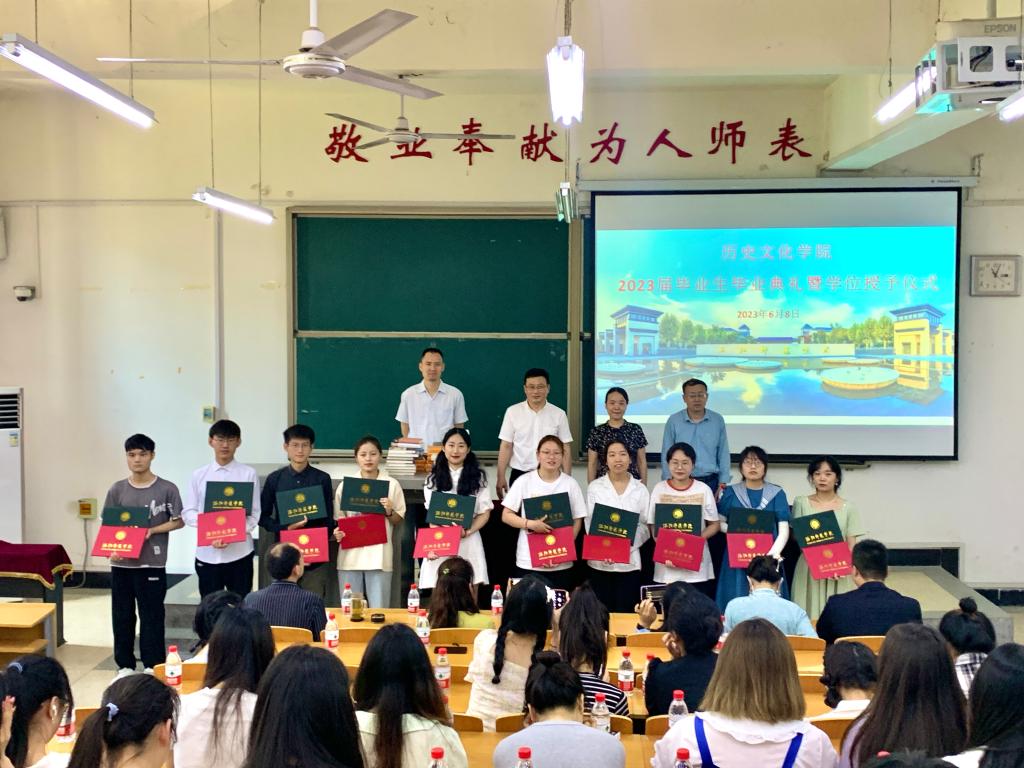 6月8日上午,历史文化学院在历史楼102举行2023届毕业典礼暨学位授予仪式。学院领导班子成员、毕业班班主任、全体辅导员、教师代表及全体毕业生参加典礼。典礼由学院党委副书记刘广锐主持。
