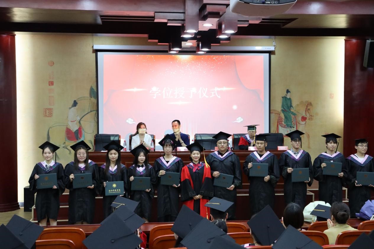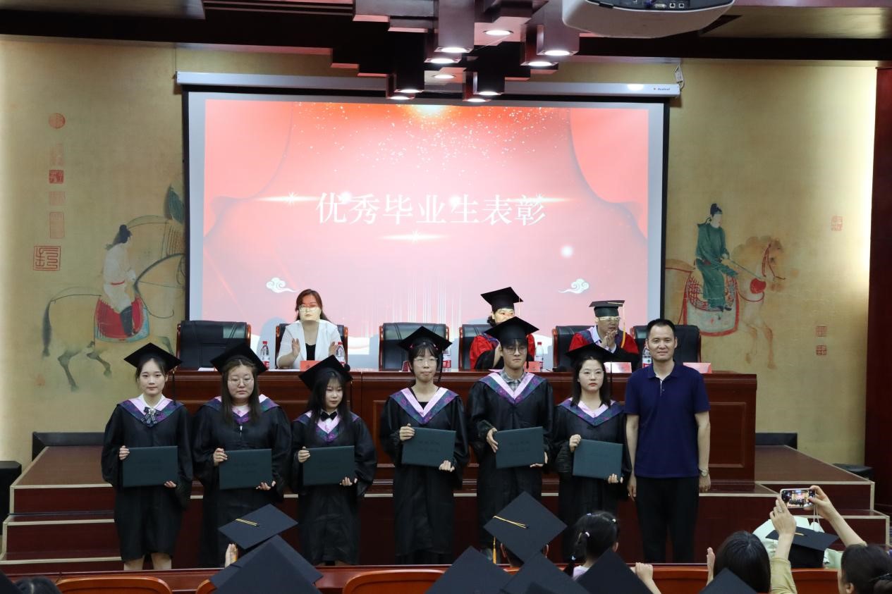 典礼伊始,全体肃立,奏唱国歌,毕业典礼在庄严的国歌声中拉开序幕。副院长张鸿亮宣读《历史文化学院关于2024届毕业生学位授予的决定》,硕士生导师郭炳洁、毛阳光、张显运、张忠、李竞强依次为获得硕士学位的毕业生正冠拨苏并授予学位。教授郭炳洁、张忠、毛阳光、张显运、王艳、吴涛依次为获得学士学位的毕业生正冠拨苏并授予学位。随后,副院长张忠宣读《洛阳师范学院关于表彰2024届毕业生优秀个人的决定》,党委书记刘广锐为“三好学生标兵”和“优秀学生干部”颁发荣誉证书。