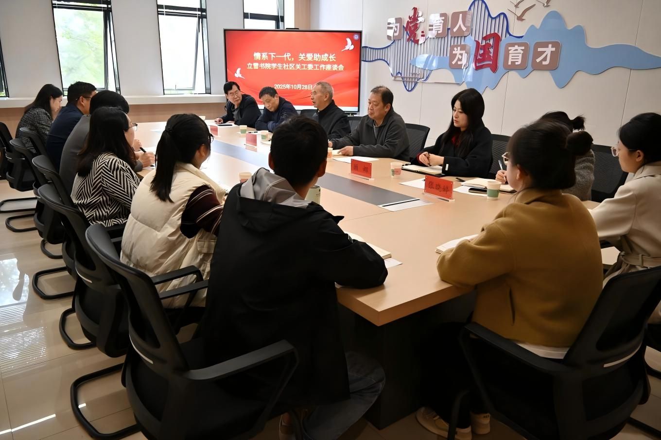 10月28日上午,校关工委张辛卯一行到立雪书院学生社区开展“情系下一代,关爱助成长”主题调研座谈。立雪书院学生社区班子成员、书院关工委委员和学生代表参会。