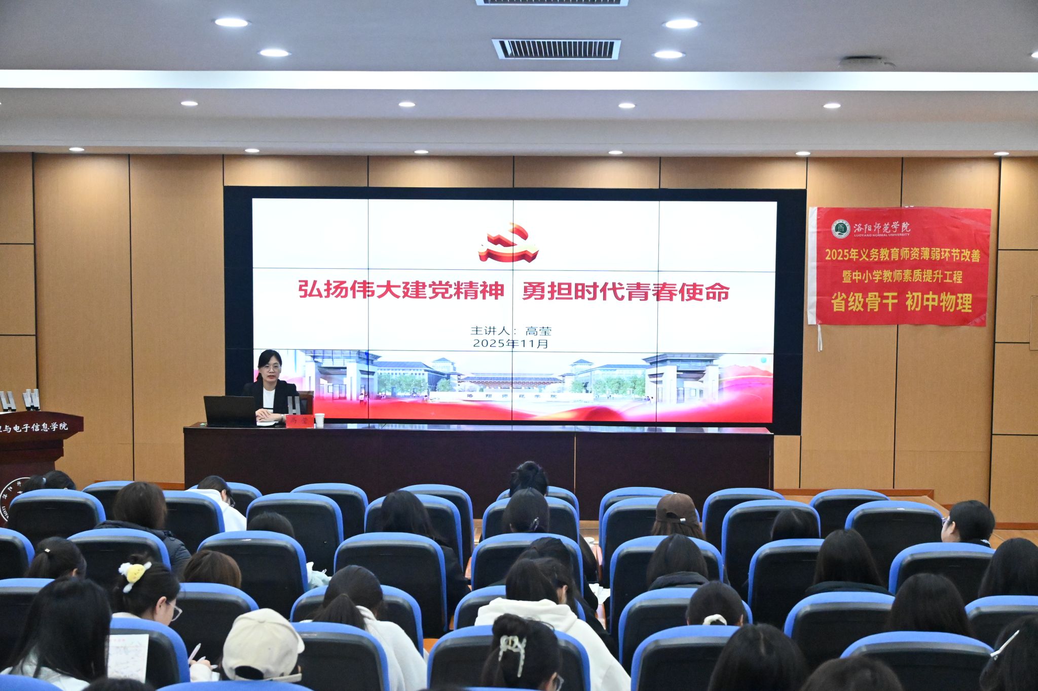 11月4日晚,立雪书院学生社区在物理楼102报告厅开展“弘扬伟大建党精神,勇担时代青春使命”主题党课培训。校团委书记高莹主讲,立雪书院学生社区党委副书记高小静主持,2025年下半年全体入党积极分子参加。
