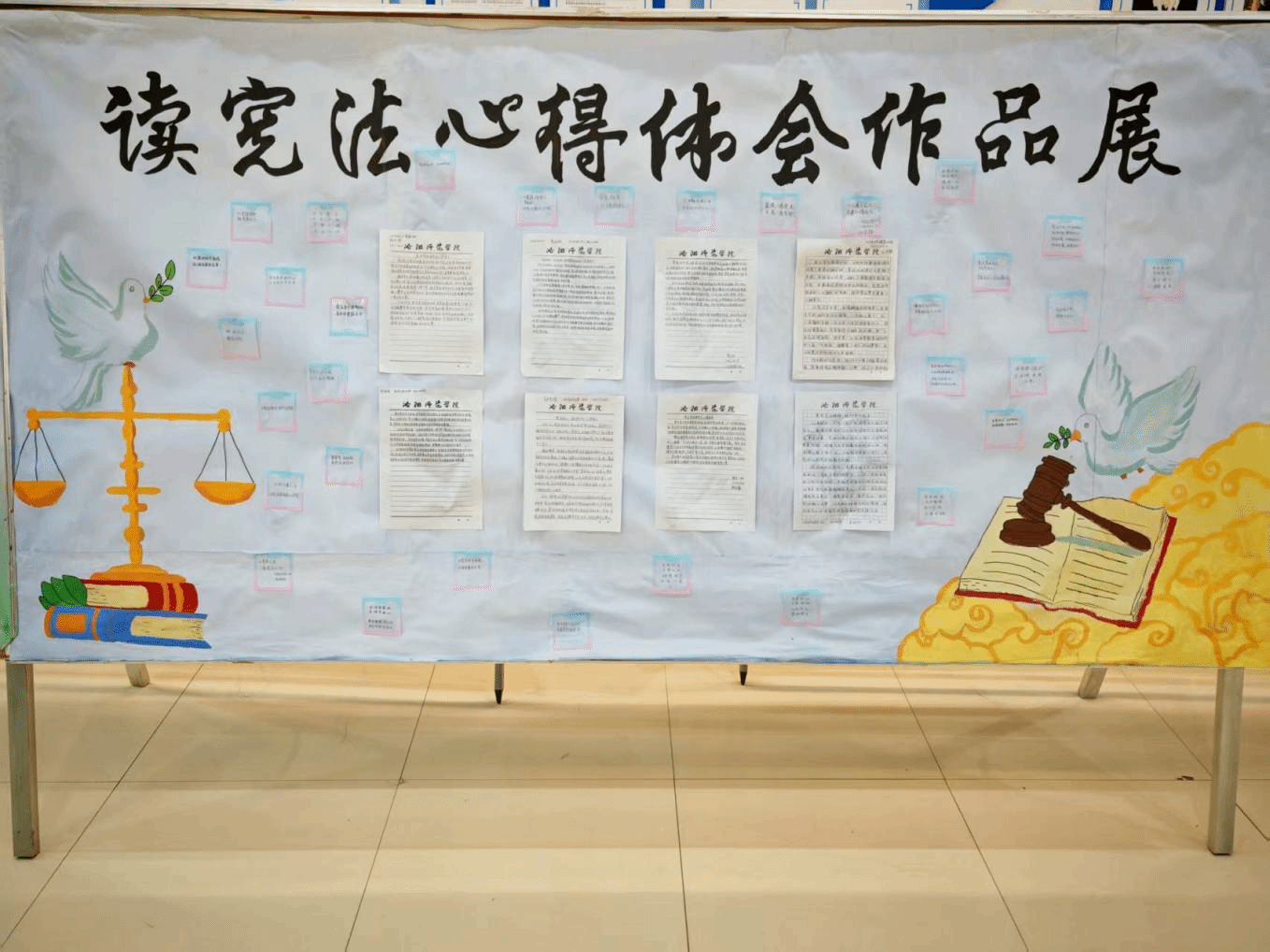 活动现场,梁潇带领同学们共同诵读宪法重要条文,字字铿锵,传递出对宪法的尊崇与敬畏。分享心得体会环节中,同学们结合自身经历,畅谈对宪法精神的理解与感悟,从宪法赋予的权利与义务,到法治社会的建设与践行,每一篇感悟都饱含着书院学生对宪法的深刻思考。会后,书院将这些心得体会制作成主题展板在书院大厅展示,进一步推动宪法学习教育融入日常。