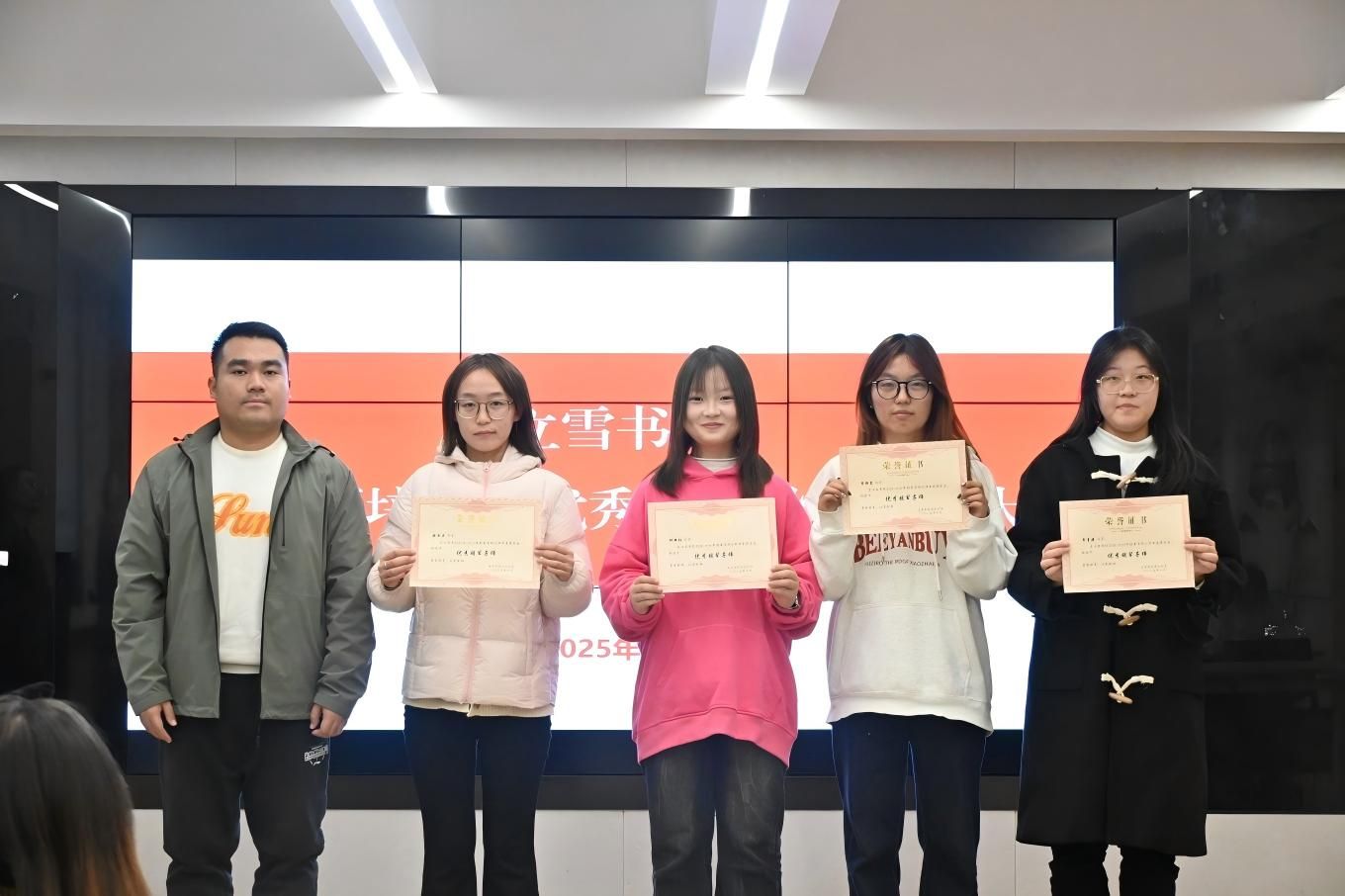 游尚奇和李轩男为田雨欣等朋辈导师代表颁发荣誉证书并合影留念。